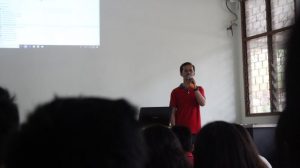 Sir Endhi, Salah satu pembina OSIS SMK Damos menyapa para peserta LDK sebelum acara dilanjutkan ke rangkaian materi LDK