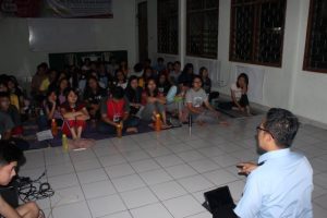 Bapak Ignatius Sigit Rinta Padmaka, S.Pd., saat menjadi pemateri Leadership di LDK Damos 2018, Senin (12/11/18). Foto: Marsel