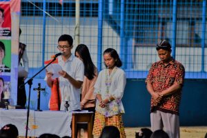 Kirab pangan lokal dari siswa-siswi Damos berbalut busana nusantara (by. Sie Dokum Damos)