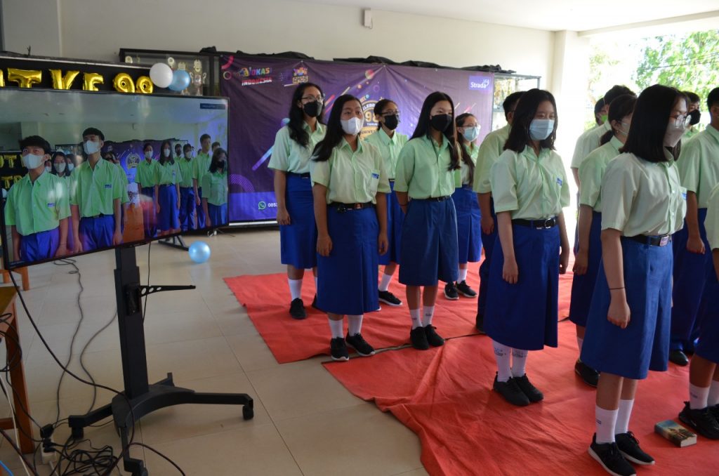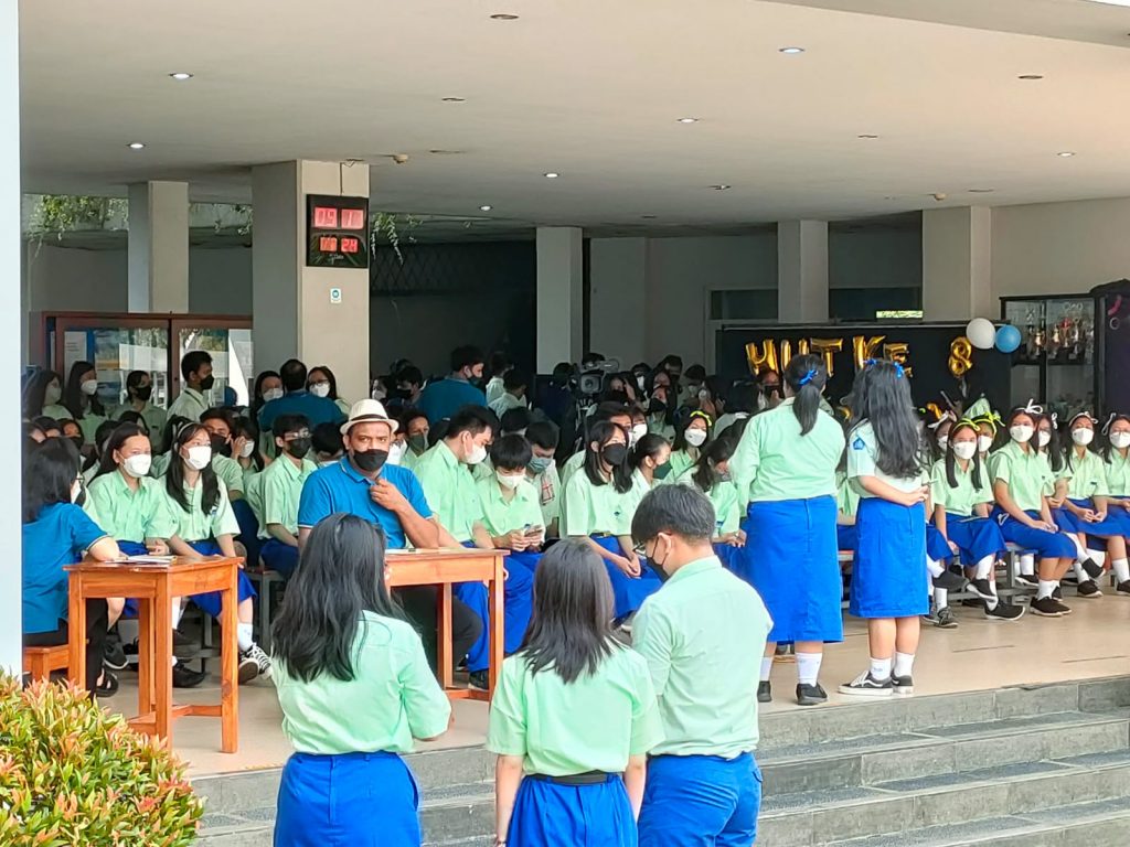 Tangerang, 24/05/2022 – Perayaan HUT Perkumpulan Strada walau disiapkan mendadak, terasa sangat bermakna. Intinya, semua terlibat: siswa, guru, dan karyawan. Diawali dengan ibadat, yang dipimpin oleh Yosef Serani Tadon, kegiatan dilakukan secara hybrid. Guru, karyawan, dan perwakilan siswa kelas X mengikuti secara langsung di hall, sedangkan siswa kelas X lain dan kelas XII mengikuti secara jarak jauh melalui media zoom. Adapun siswa kelas XI, tidak dilibatkan, karena sedang PKL di perusahaan.