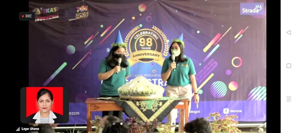 Hana Budi Asih dan Elisabeth Dwi Retno A. – MC Perayaan HUT Strada di SMK Damos (Tangkapan layar zoom)