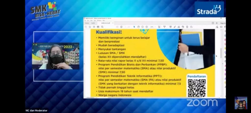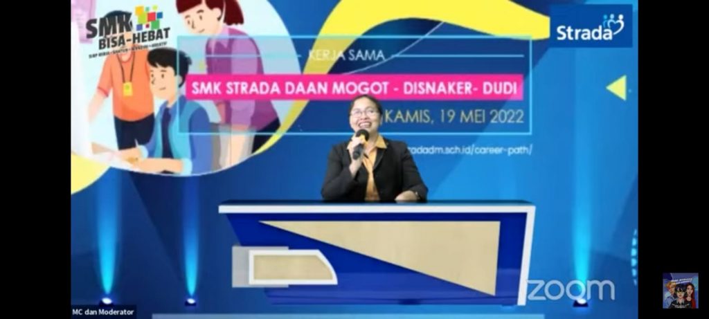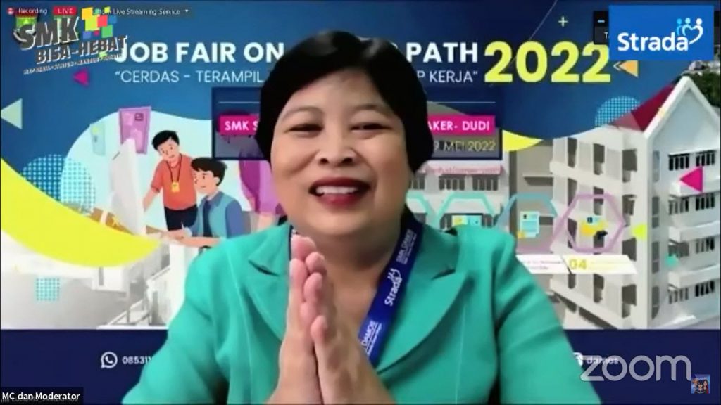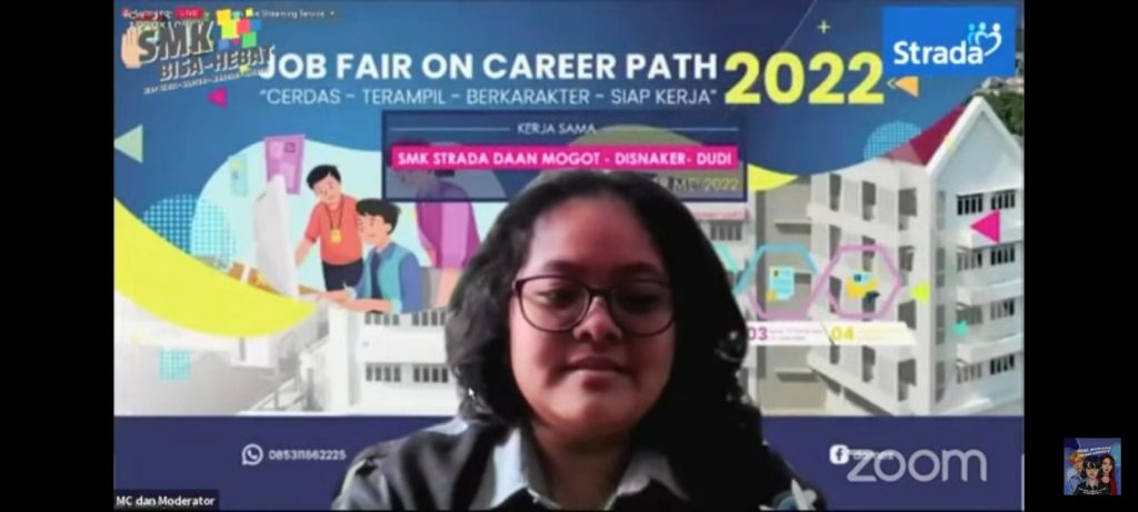 Hana Budi Asih – Moderator Job Fair on Career Path 2022 (Tangkapan layar live treaming di Youtube SMK Damos)