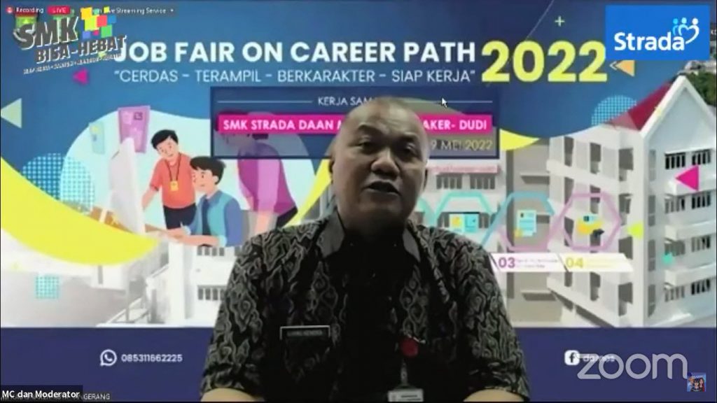 Job Fair on Career Path diselenggarakan secara daring melalui aplikasi zoom dan ditayangkan langsung melalui kanal youtube SMK Strada Daan Mogot, mulai pukul 09.00 dan berakhir di pukul 12.00 WIB. Opening Ceremony dipandu oleh Master of Ceremony (MC) Job Fair on Career Path 2022, Darryl Nicholas dan Yohana Bella. Keduanya membuka kegiatan dengan menyapa para undangan yang hadir melalui aplikasi zoom. Kegiatan ini dihadiri oleh perwakilan dari Kepala Cabang Dinas Pendidikan dan Kebudayan Wilayah Kota Tangerang dan Tangerang Selatan, H. Suryadi dan kegiatan dibuka secara resmi oleh Kepala Dinas Ketenagakerjaan Kota Tangerang , Ujang Hendra Gunawan.