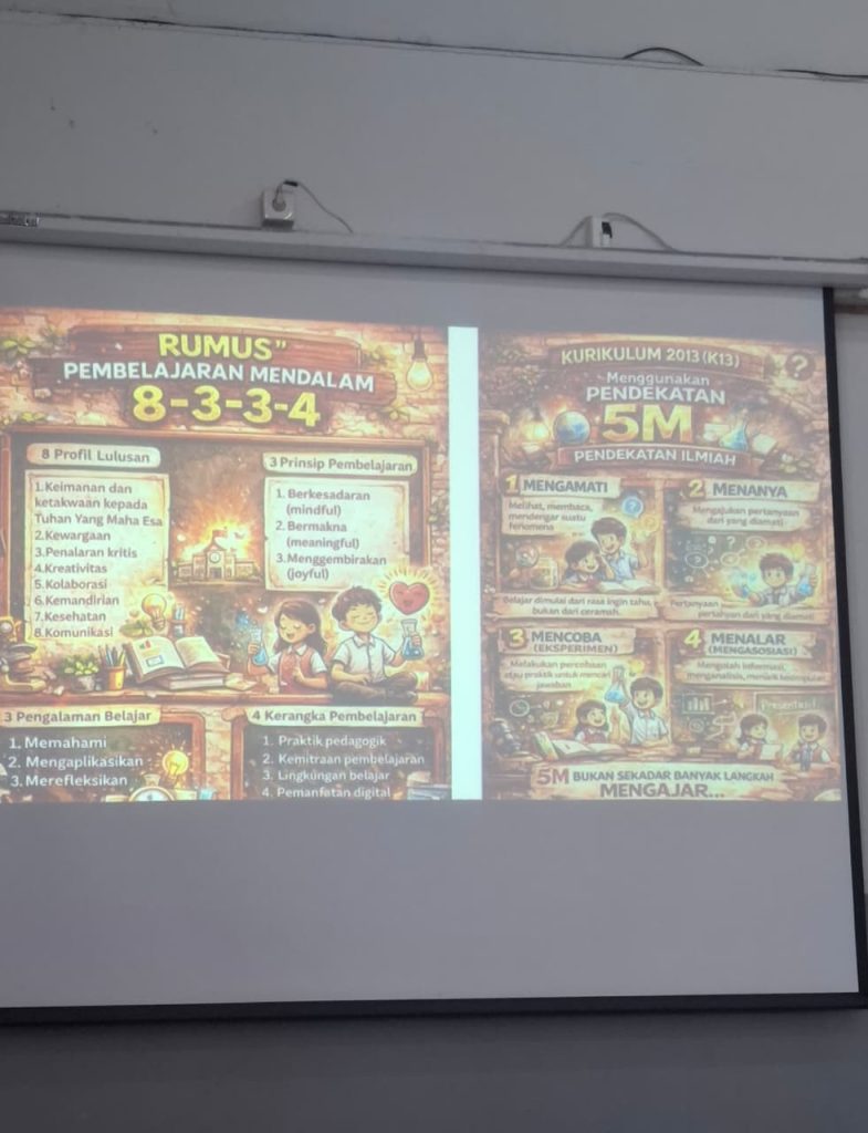 Dalam penyampaian materinya, pengawas menegaskan bahwa guru tetap menjadi faktor paling menentukan dalam kualitas pendidikan. Perubahan kurikulum bukan mengurangi peran guru, melainkan menegaskan kembali pentingnya peran guru sebagai pembimbing karakter dan pembentuk masa depan siswa. Kurikulum terus berkembang sebagai respons terhadap perubahan zaman, sehingga pembelajaran tidak lagi hanya berfokus pada pengetahuan, tetapi juga pada kemampuan berpikir kritis, kecakapan hidup, serta kecerdasan sosial-emosional.